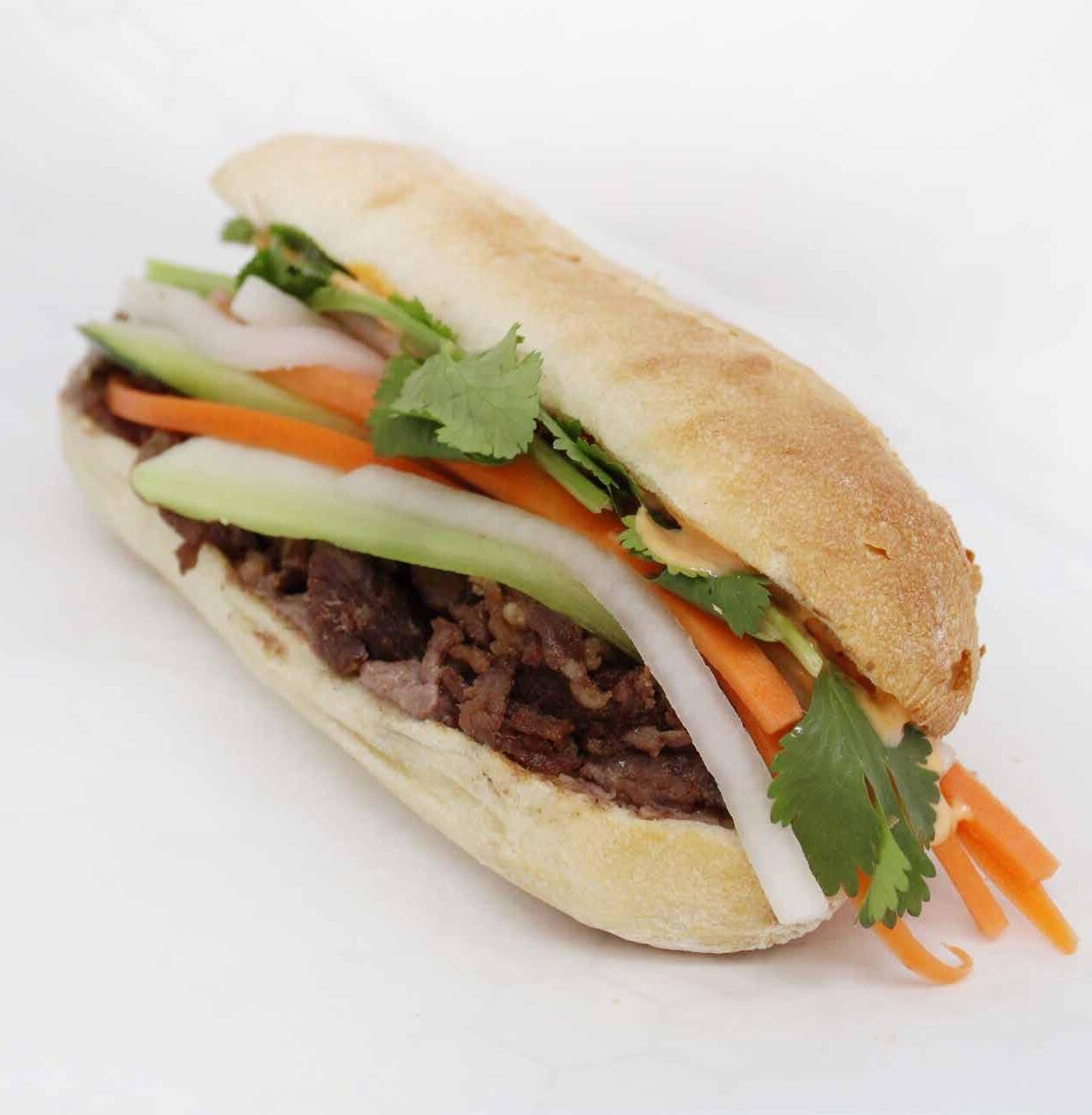 Beef or chicken – roasted in Tamari sauce, drizzled with spicy mayo, topped with house-made pickled daikon and carrots and served in a French style baguette with a paté spread. Made-to-order in the deli.