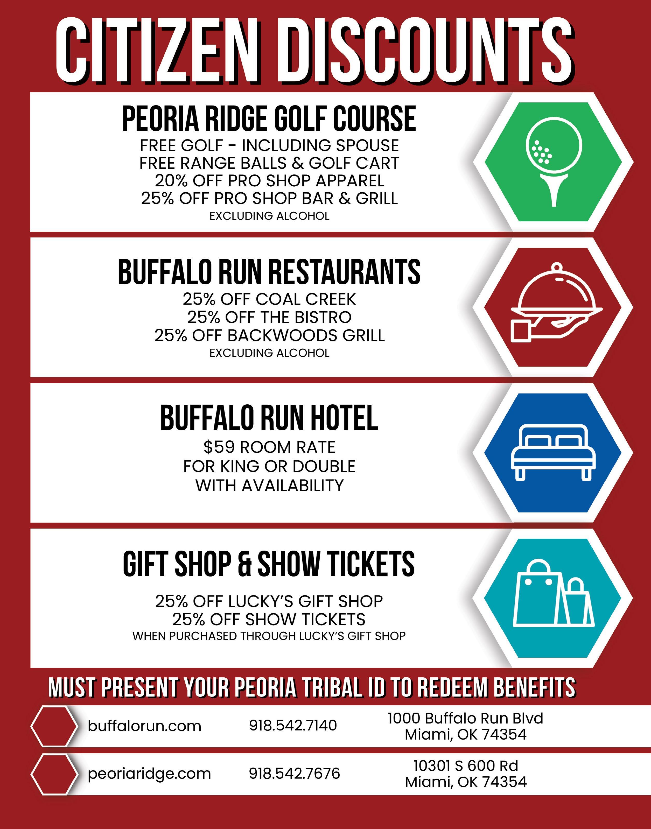 • Individual must be a current enrolled living citizen of the Peoria Tribe, 65 years or older, evidenced by a Photo ID.