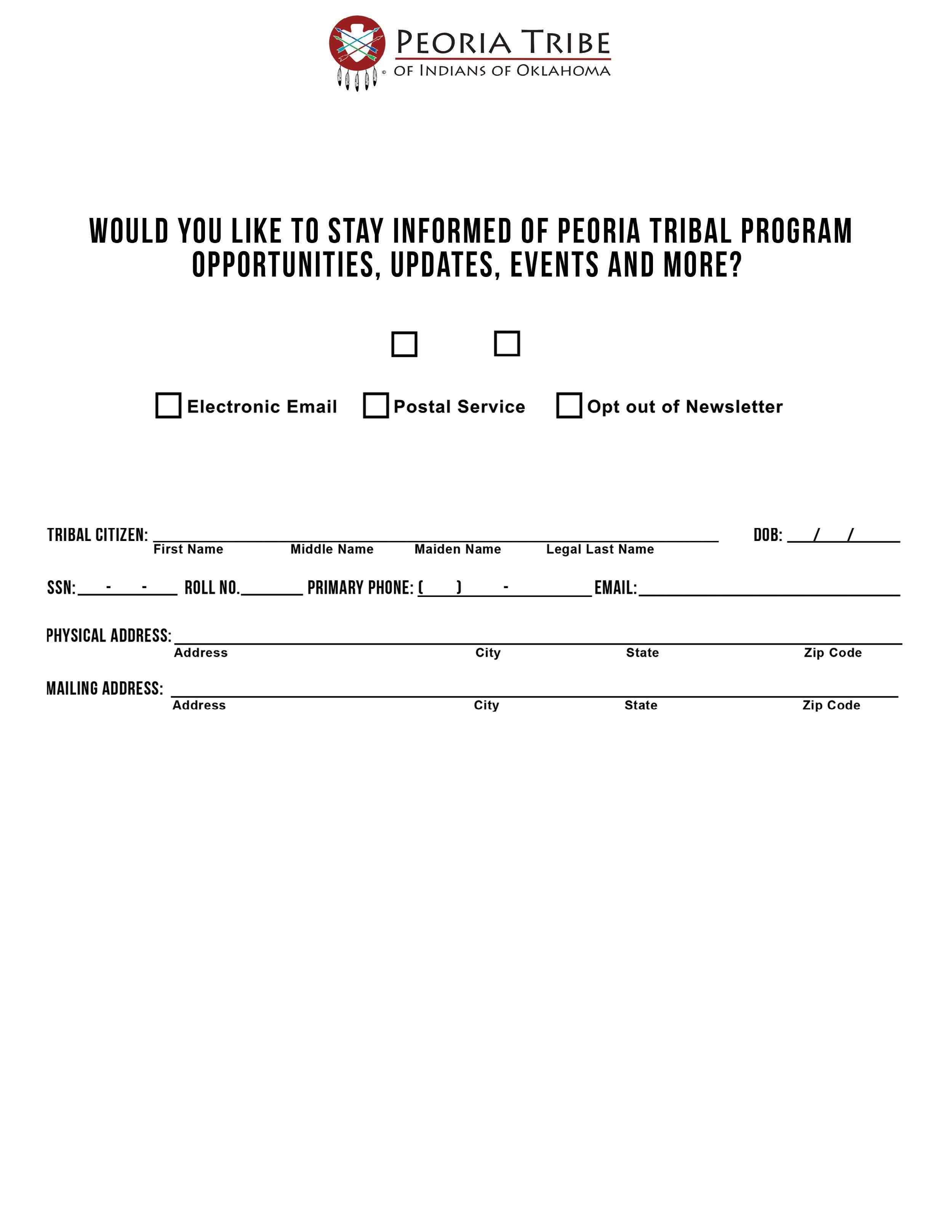 You may also review the policies and procedures on the tribal website, or contact the office to receive a copy. If you have any questions feel free to contact Tribal Programs at 918-540-2535 at the Peoria Tribal office.