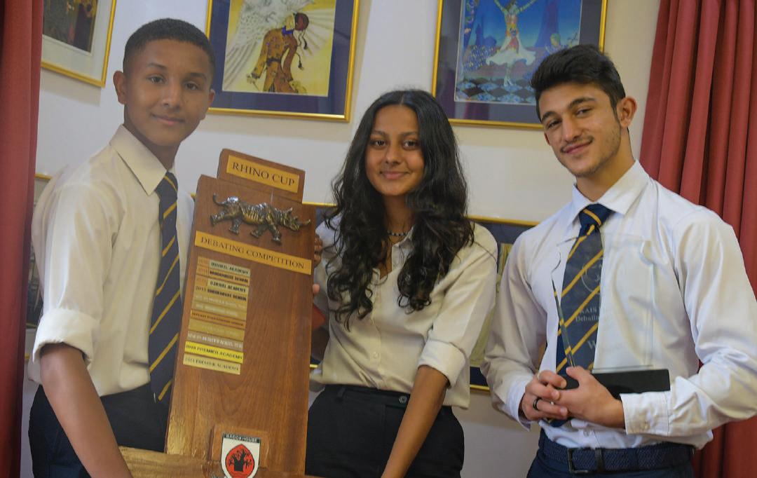 e Rhino Cup is a rigorous debating competition amongst the senior years of the KAIS member schools. Each school that enters puts forward three debaters who are supported by a team of twenty English and MUN students who take time out of their busy schedules to help brainstorm ideas on the motion and help them write their speeches. I had the honour of being one of the students supporting our very talented debaters: Maansi Ruparel(E), Ryan Gontier(C) and Saahir Dewany(M), all pupils in Upper VI. Although we supported them, they put in the most amount of work. e dedication that I have seen throughout this whole competition is honestly admirable.