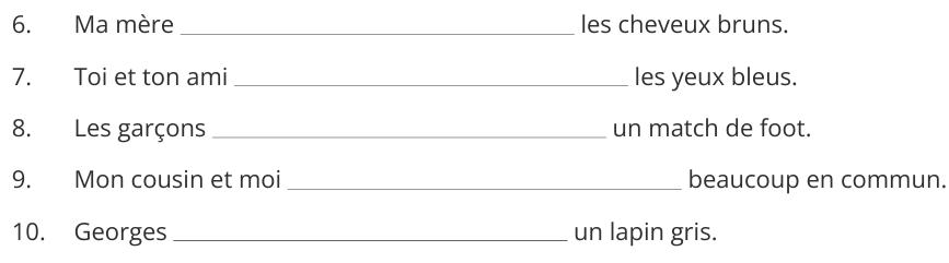In this module, you learn how to talk about yourself and others. You’ll describe your likes and dislikes, your personality, and your appearance. You’ll also learn how to use regular -er verbs, the verbs avoir and être, and how to make adjectives agree with nouns.