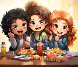 iii. Au petit déjeuner, il mange ……………………… et il boit ……………………