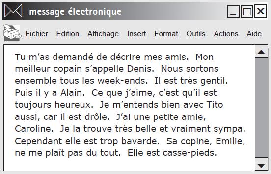 In this module, you learn how to talk about yourself and others. You’ll describe your likes and dislikes, your personality, and your appearance. You’ll also learn how to use regular -er verbs, the verbs avoir and être, and how to make adjectives agree with nouns.