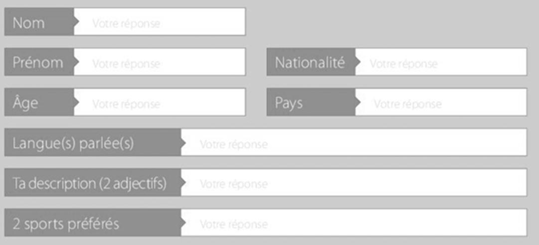 1. Complétez cette fiche de présentation pour trouver un correspondant. Adomania 1 Livre pg 62