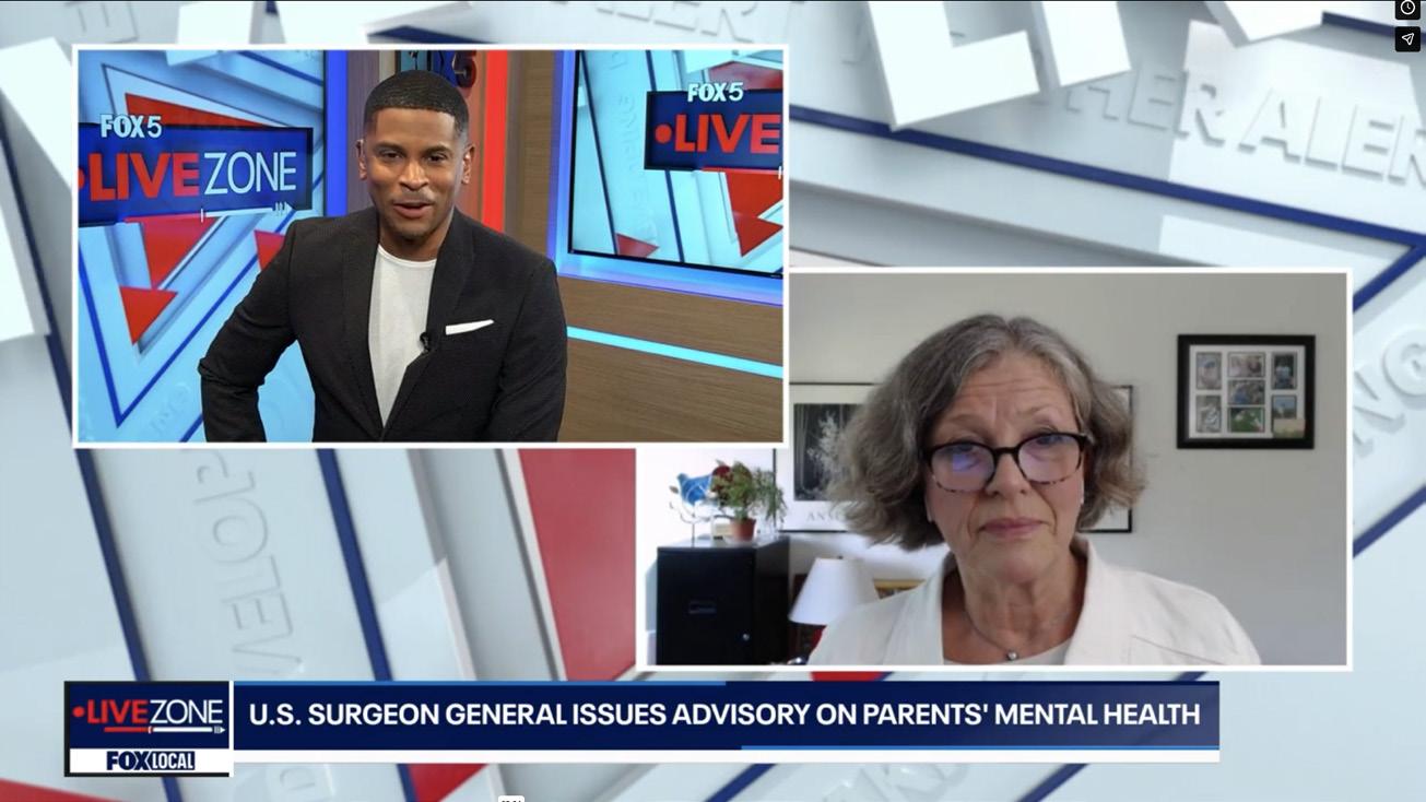 PEP Board Member and Parent Educator Pascale Brady appeared on Fox5 Live Zone to discuss the U.S. Surgeon General Advisory on the Mental Health and Well-Being of Parents.