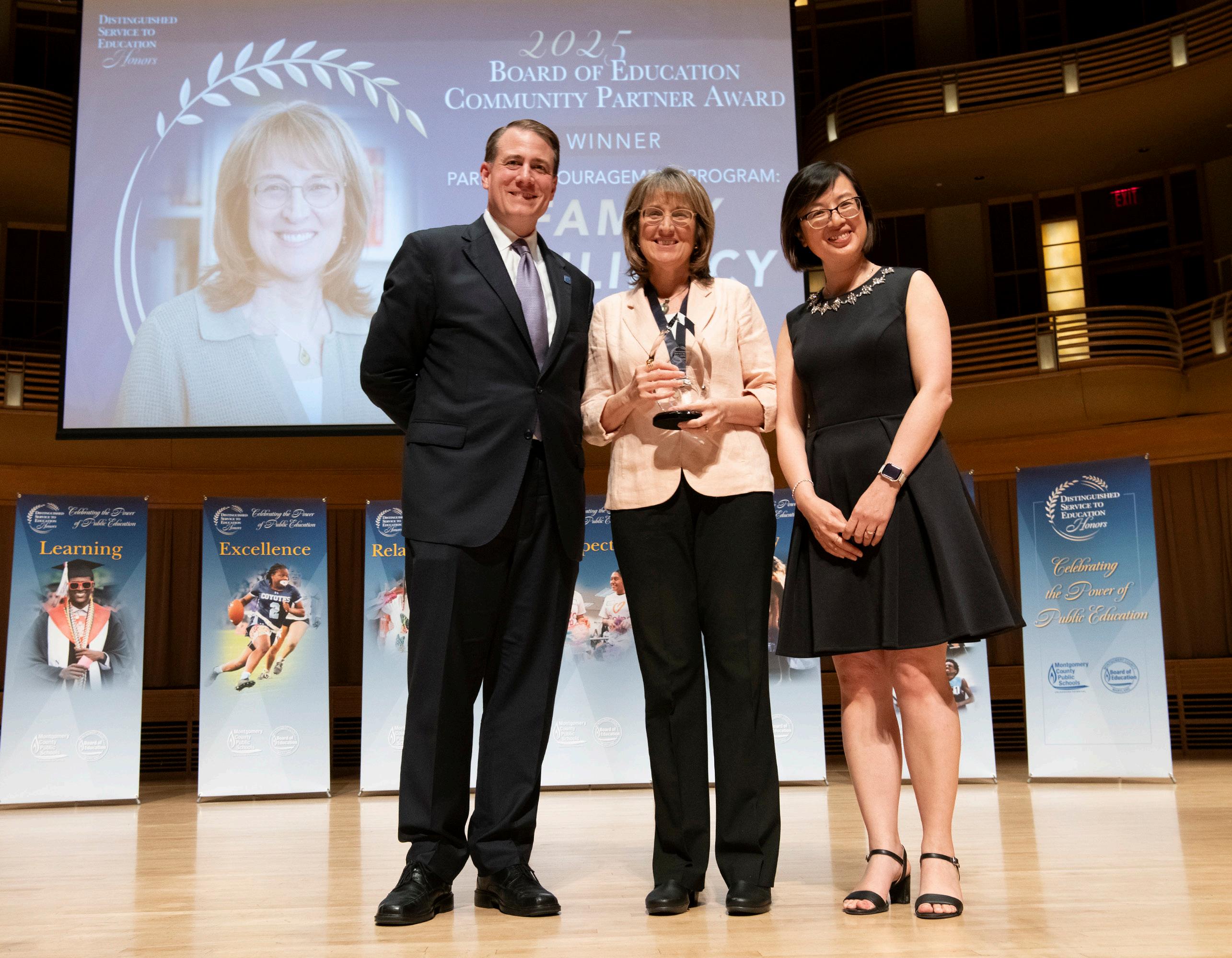 PEP Executive Director Kathy Hedge (pictured with Superintendent Thomas Taylor and Board of Education President Julie Yang) accepted the award, recognizing PEP’s lasting impact on the educational experience within Montgomery County.