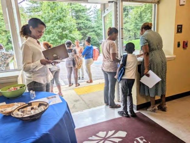 Sulema Middleton Stewart, MHP’s Vice President of Community LifeNew PEP parent educators (from left to right) Meselu Mekonnen, Semehar Teka and Nesi Ayele, along with PEP Program Coordinator Bridget Edwards (standing to the right of the PEP sign) at an MHP Meet & Greet event.