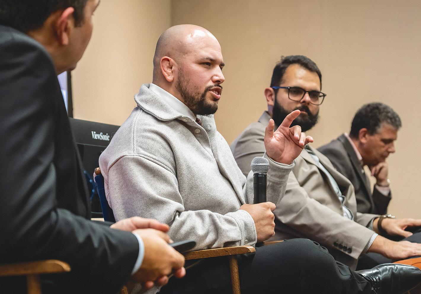 The thoughtful application of AI was at the center of Pepperdine’s annual faculty conference (top), has been practiced with great success by Seaver College professors Fabien Scalzo (center left) and Gerard Fasel (center right) and is a scholarly theme of the Graziadio School’s Cole Short (bottom).