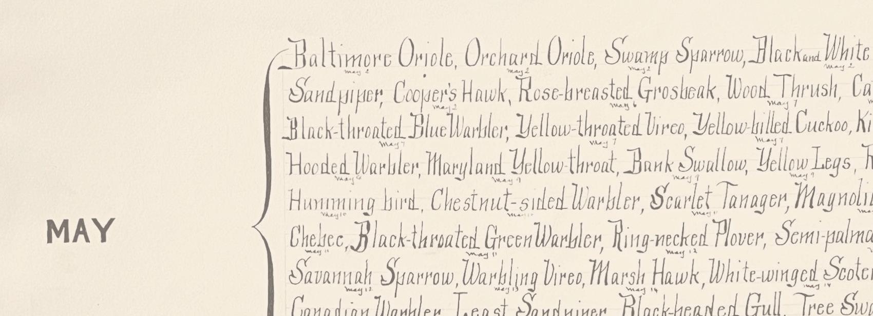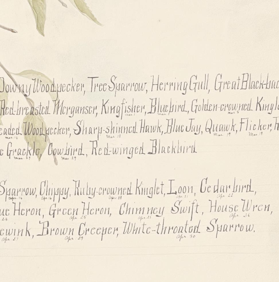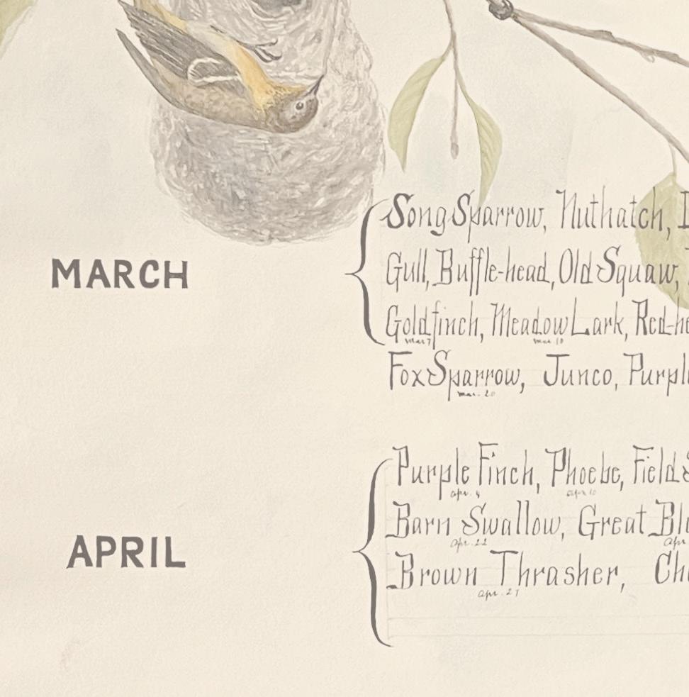 Attributed to Charlotte Alvord Lacey (1867–1951), Bird Calendar, Southport, 1915, watercolor on paper; Pequot Library Special Collections.