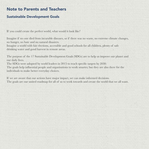 Note to Parents and Teachers Sustainable Development Goals