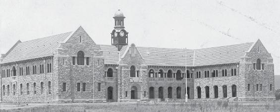 the spacious campus and effectively connecting to the public streets outside through various entrances. Certain focal points can be distinguished. The main focus is undoubtedly the Old Arts Building, a graceful sandstone building. It was designed in 1910 by Percy Eagle, a young English architect employed by the Public Works Department (P.W.D.), who was an adherent of the famous Sir Herbert Baker. The different European styles of building that were so freely interpreted at the time, make it rather difficult to identify this building properly, but one can safely assert that Cape Dutch Revival and Neo Romantic styles have been combined in this structure.