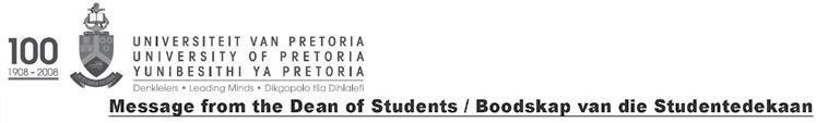 During the course of last week I participated in the launch of two important student initiatives, one by Tuks Rag and the other by the SRC. Common between these was the idea of voluntarism in the service of less privileged fellow human beings. Tuks Rag launched the 2011/2012 Debutantes Programme whose aim is to raise funds for charity by participants who do not expect anything in return. The SRC launched a “donate a text-book” campaign which will go a long way in helping students who have the potential to do well but are inhibited by their unfavourable socio-economic conditions. Both campaigns have my full support. I appeal to all our students to support them in one way or another. Some may want to help the debutantes with their local fund-raising efforts while others may want to donate some of their second-hand text-books which are collecting
