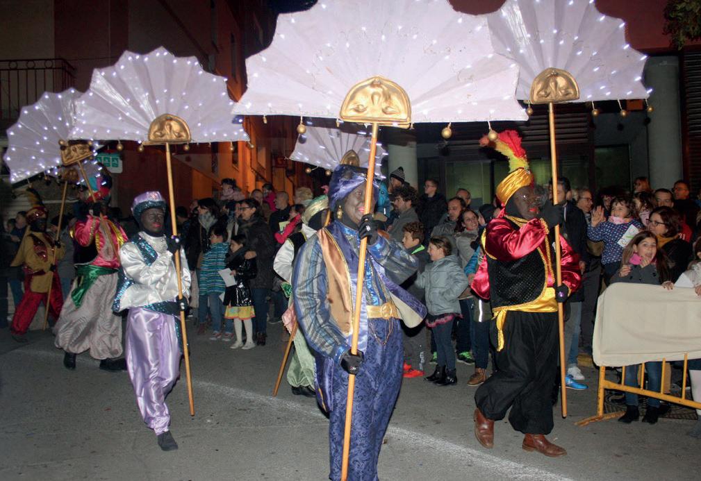 A continuació, es comença la Cavalcada pels carrers del Municipi, repartint caramels i regalèssia a tots els assistents. Es dona per finalitzada una vegada arriba a la Plaça de l’Ajuntament, on els Reis fan el pregó acompanyat per l’Alcalde del poble. En finalitzar, els patges reparteixen coca i moscatell a tot el públic.