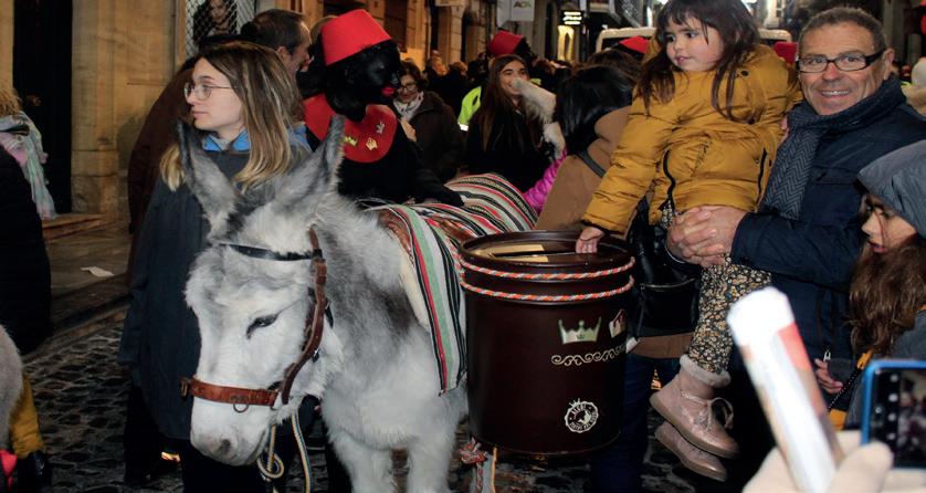 “Després d’haver finalitzat la cavalcada, una flota de camions plens de joguines transita pels barris de la ciutat, mentre que els patges es personen als habitatges i obsequien els més petits amb els presents de Ses Majestats.”