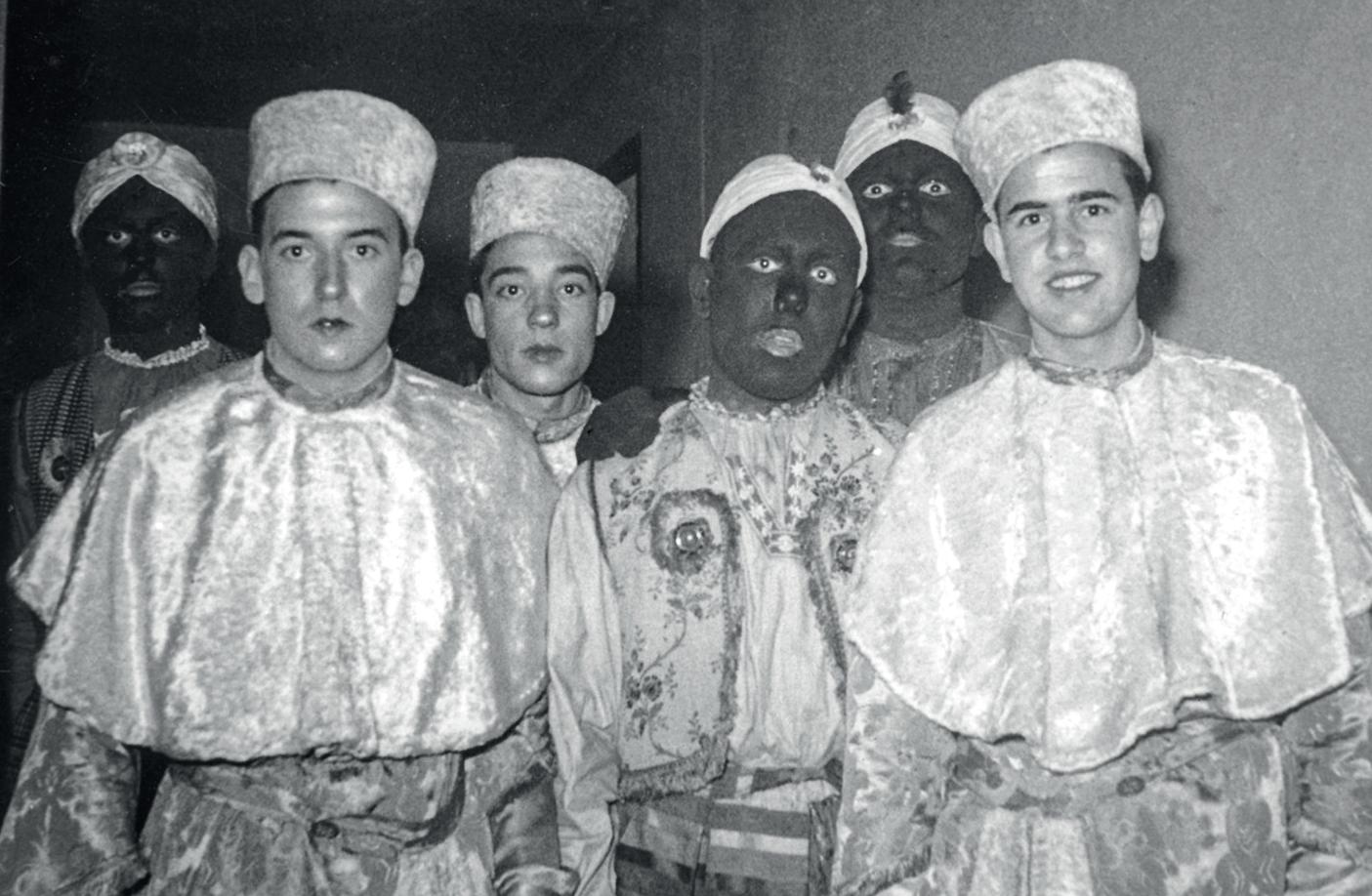 Els Reis dalt de cavall amb la comissió organitzadora. Principis de la dècada dels anys seixanta.