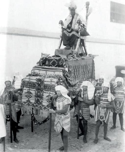 5.-Els patges del Rei Baltasar carregats amb el palanquí ple de regals per a la mainada.