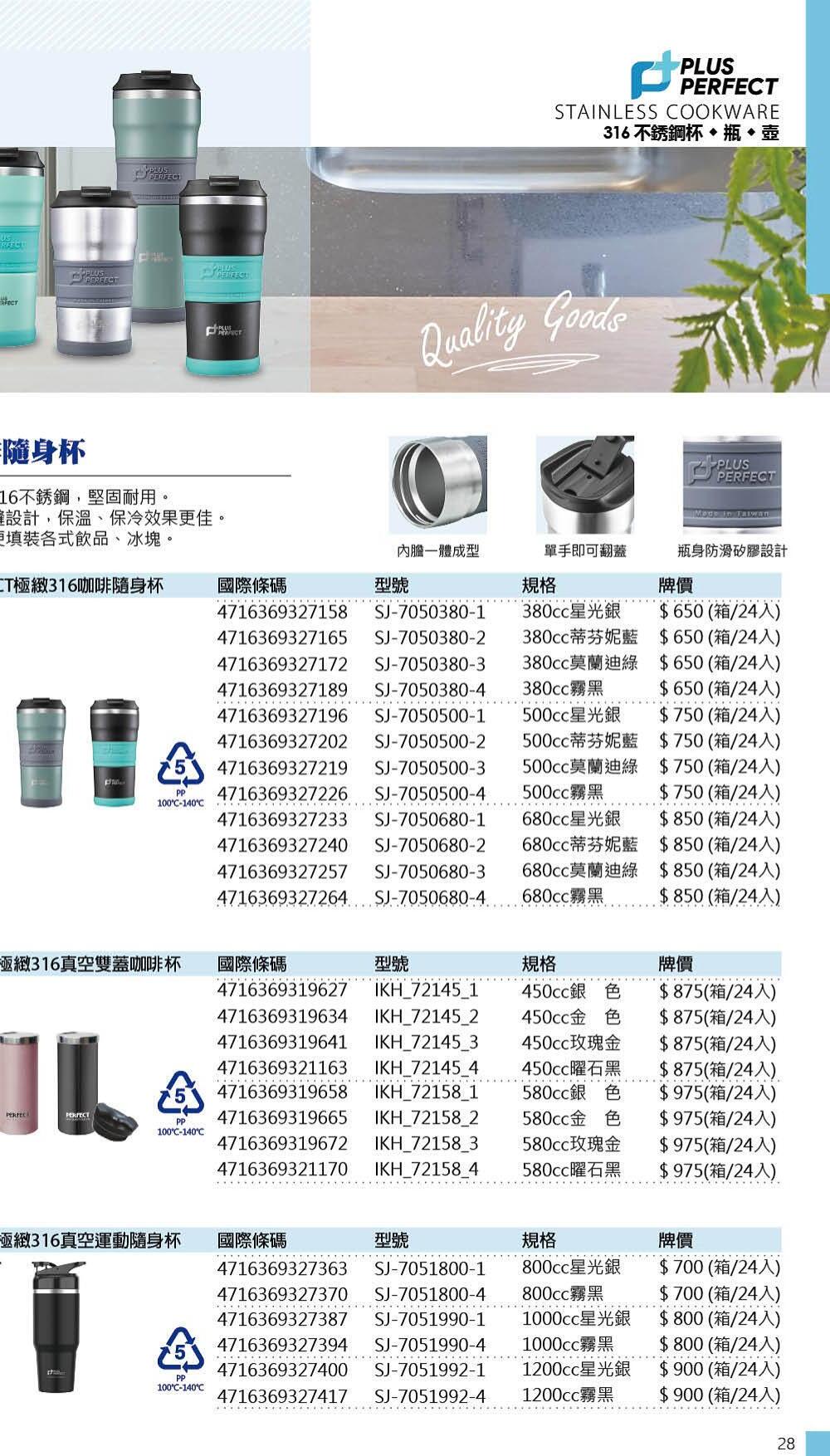 Shangzhan Industrial Co., Ltd. was established in 1988, and its own brand from Taiwan in the ground factory PERFECT, led the major counters of stainless steel pot with more than 20 years of experience, introduced all kinds of pots, non-stick pots, insulation Cups, stainless steel appliances...etc. We understand the love of every housewife for the family and insist on giving you the best!