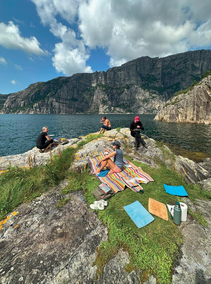 Wyruszyliśmy z Polski przez Niemcy do Danii, by w Hirtshals, późną nocą, złapać prom. Po niespełna trzech godzinach delikatnego kołysania fale wyniosły nas do Kristiansand – pierwszej bramy Norwegii. Zjechaliśmy z pokładu i ruszyliśmy w głąb lądu, kierując się na Evje. Droga wiodła przez lasy, a noc była już gęsta i cicha, gdy nagle na poboczu pojawił się on – łoś, ogromny i majestatyczny, z rozłożystym porożem. Przez chwilę stał spokojnie, jakby samym swoim wyglądem potwierdzał, że naprawdę dotarliśmy do krainy Północy. Po chwili wszedł w las i zniknął. Dalsza droga nie była łatwa. Aplikacja „Park4night” podsuwała kolejne propozycje, ale wszystkie miejsca były zajęte. W końcu, około czwartej nad ranem, trafiliśmy na utwardzony leśny plac. Rozłożyliśmy namiot na dachu i niemal natychmiast zasnęliśmy – pierwszy norweski poranek miał zacząć się właśnie tutaj. Rankiem, choć mocno niewyspani, rozłożyliśmy palnik i nastawiliśmy wodę na kawę – ten rytuał zawsze smakuje najlepiej w terenie. Poranek przywitał nas łagodnym słońcem i śpiewem ptaków, a szybkie śniadanie dodało sił, by ruszyć dalej na północ, w stronę Stavanger.