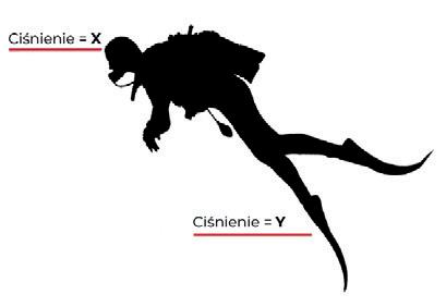 Na głowę nurka w naszym przykładzie działa ciśnienie X, lecz na jego nogi działa już ciśnienie wyższe o wartości Y przy czym jak wskazałem, X<Y. W medycznym i fizjologicznym uproszczeniu, wyższe ciśnienie Y powoduje przetłoczenie płynów ustro-