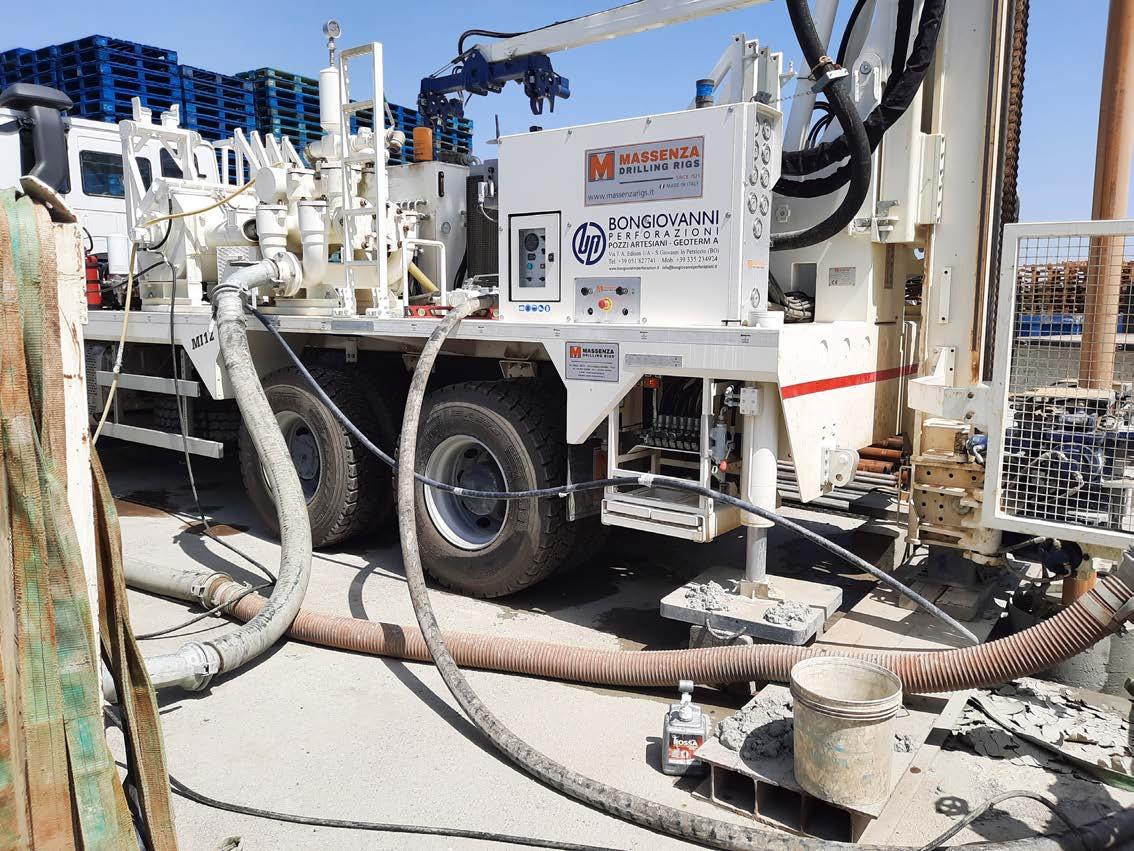 dità da 230 a 245 mt, si è proceduto alla cementazione, per chiudere il tubo, nella parte terminale, partendo dal rivestimento iniziale. Durante l’intera fase di perforazione, è stato impiegato un sistema di trattamento fanghi in modo da ottenere un fluido sempre pulito e della viscosità adeguata, vista l’importanza del cantiere e la tipologia di terreno. Per terminare il lavoro, il pozzo è stato pulito tramite air lift. In tutto, il cantiere è durato un mese, e durante questo periodo di lavorazione ogni dettaglio e componente tecnico hanno fatto la differenza in termini di velocità, efficacia e qualità del risultato finale. La perforatrice Massenza ha giocato il ruolo di protagonista, naturalmente, con