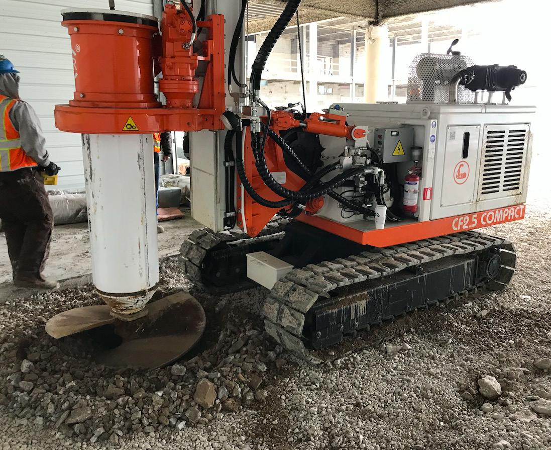 su un sottocarro allargabile e con il sup porto mast che prevede un dispositivo contro-slitta per consentire di lavorare a un’altezza minima, addirittura di 2,5 m”. Un risultato che tutt’ora non è stato mai eguagliato da nessuno sul mercato, a di mostrazione dell’ottimo lavoro svolto dai progettisti di Osimo. Oggi, la nuova CF2.5 COMPACT è stata dotata di un doppio impianto idraulico, con la possibilità di montare due diver se rotary, da 25 e 35 kNm di coppia, ed