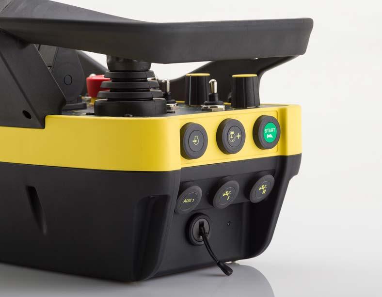 templa fino a 12 comandi proporzionali e fino a 64 comandi digitali, ulteriormente ampliabili fino a 26 proporzionali e 128 digitali utilizzando la nuova elettronica con configurazione estesa. Un telaio otti mizzato ospita il display a colori da 4.3” o il nuovo display monocromatico da 4.1”. Sono disponibili da quattro a 32 Led di se gnalazione. La connessione radio è dual
