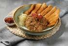 Place peanuts in a food processor and blend till small bites, set aside. Combine shallots, garlic, chill, shrimp paste, and water in the food processor; process until smooth; set aside.
