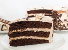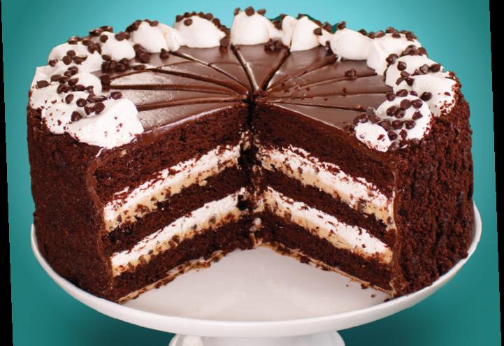 Fluffy, mouthwatering cappuccino mousse is piled into a rich chocolate cookie crust. To top it all off, the cake is finished with a thick chocolate topping for a rich, creamy, chocolaty cake with a decadent streak of fresh coffee flavor. 12 slices.