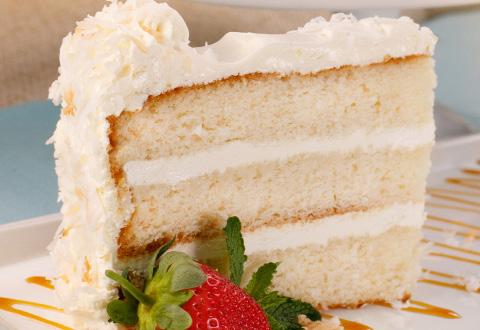 Three towering layers of ultra moist coconut cake are filled with clouds of creamy coconut mousse made with real coconut milk. Snowy flaked coconut surrounds this heavenly experience.