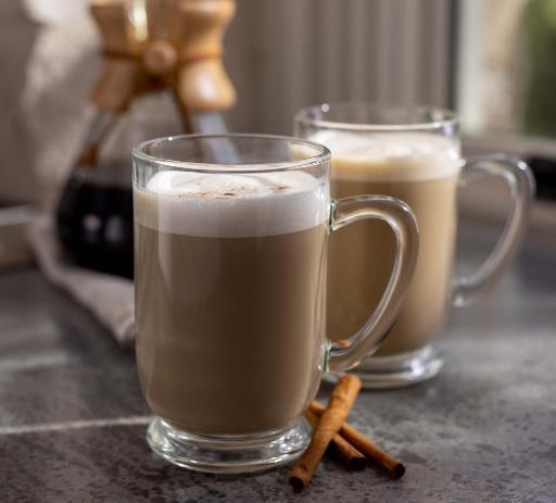 Hot Coda House or Dark Notorious blend coffee with a touch of cinnamon and nutmeg, served with milk or cream.