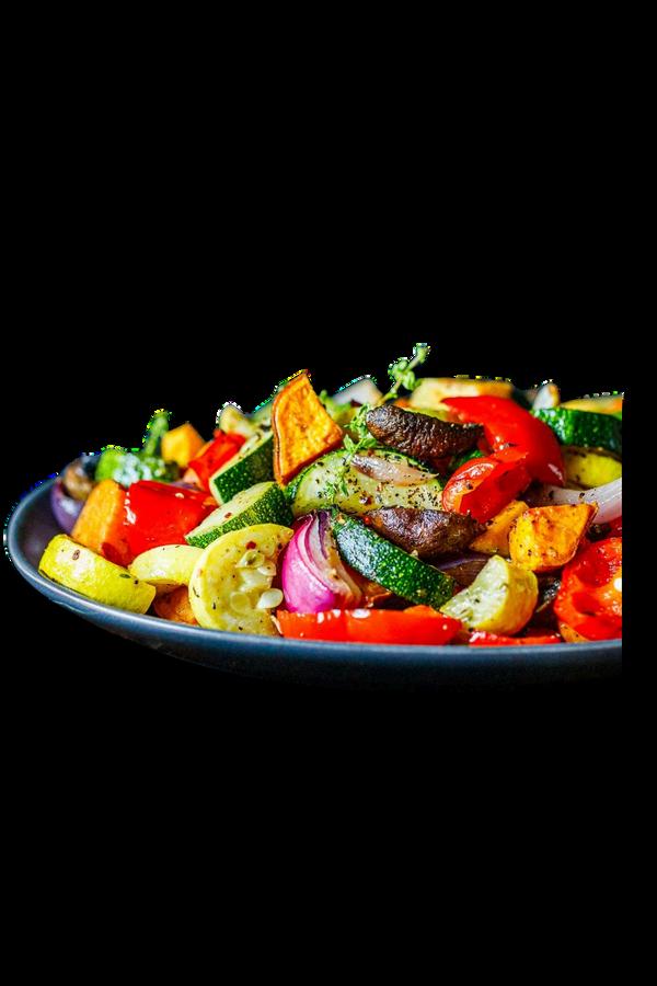 Featureroastedveggiesasaplatedside insteadofarawgarnish