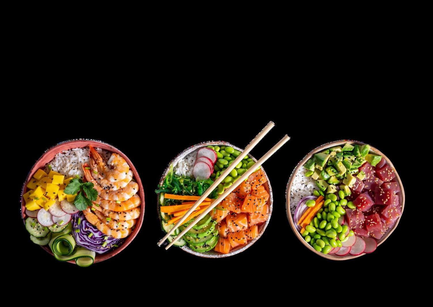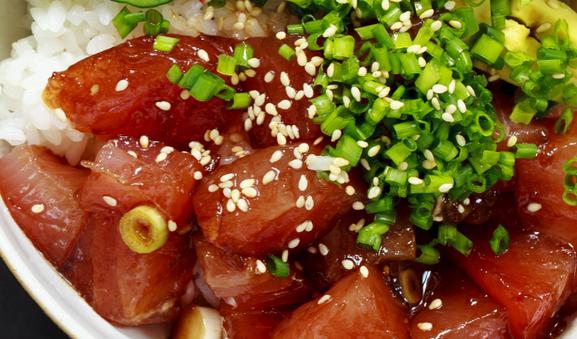PokeBowls:Freshfishwithsesame rice,cucumber,avocado,andsoy-citrus dressing