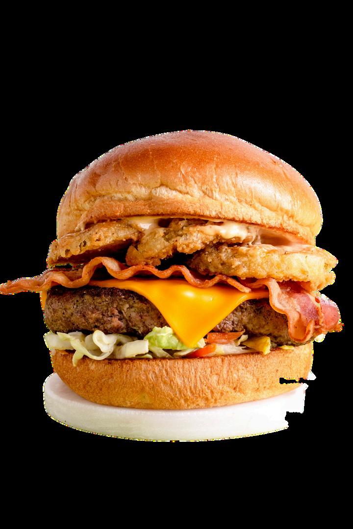 A vibrant twist on a classic, featuring a Royal Thai Curry Patty topped with zesty Thai pico de gallo, melty cheeses and fresh greens. These bold Thai flavors meet craveable comfort with spicy chilies, crunchy banana chips and a hearty Royal Thai Curry Patty layered on a toasted bun