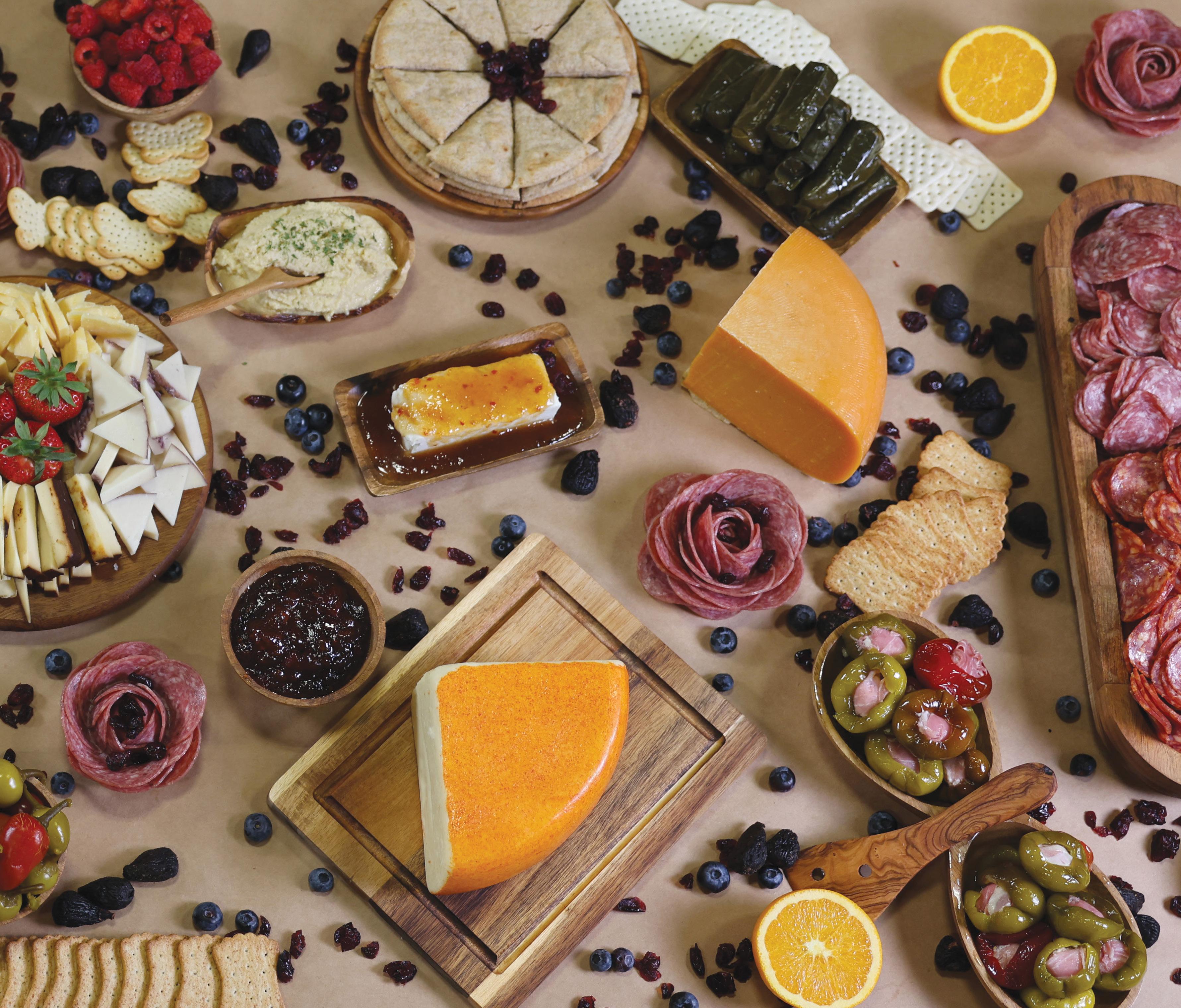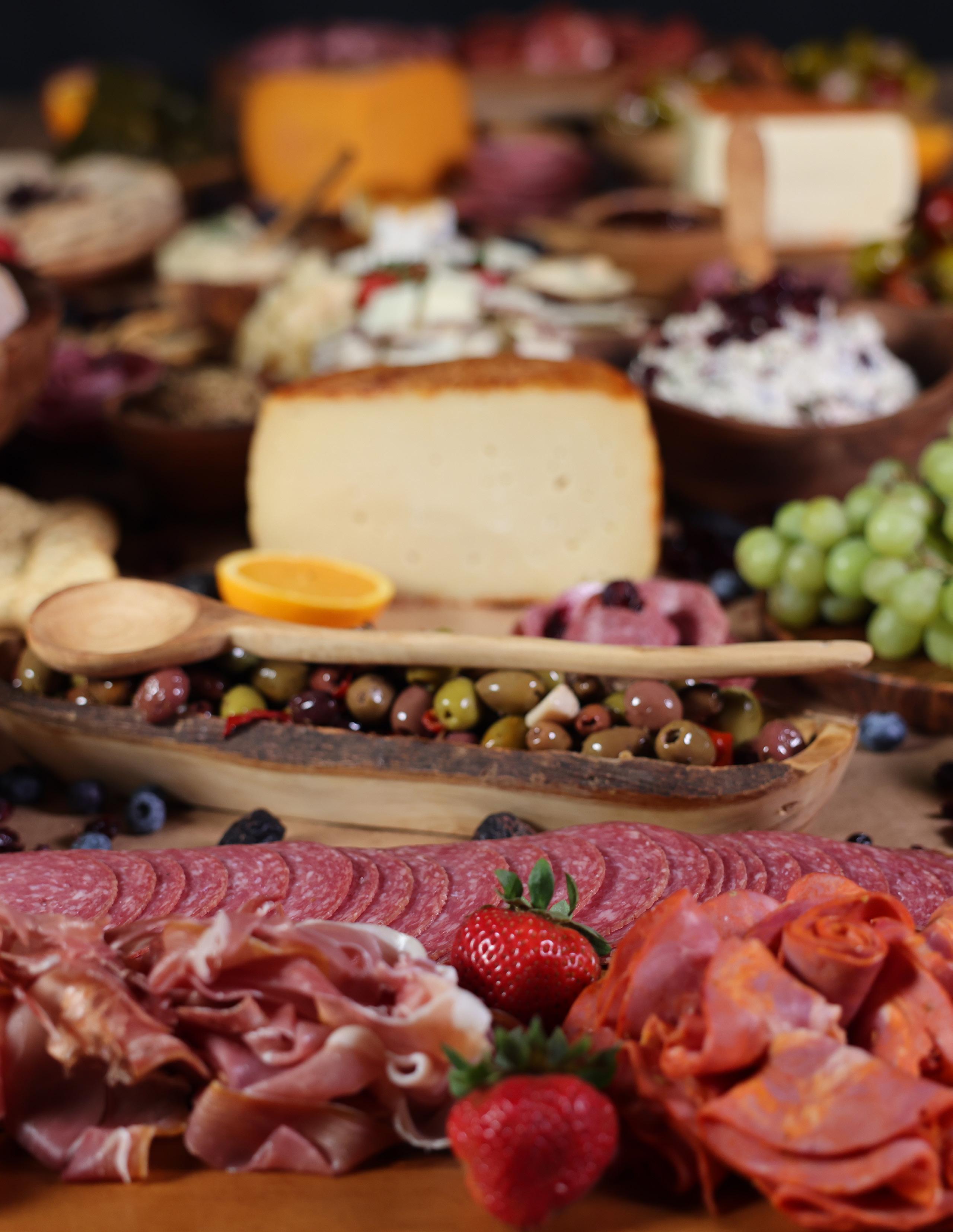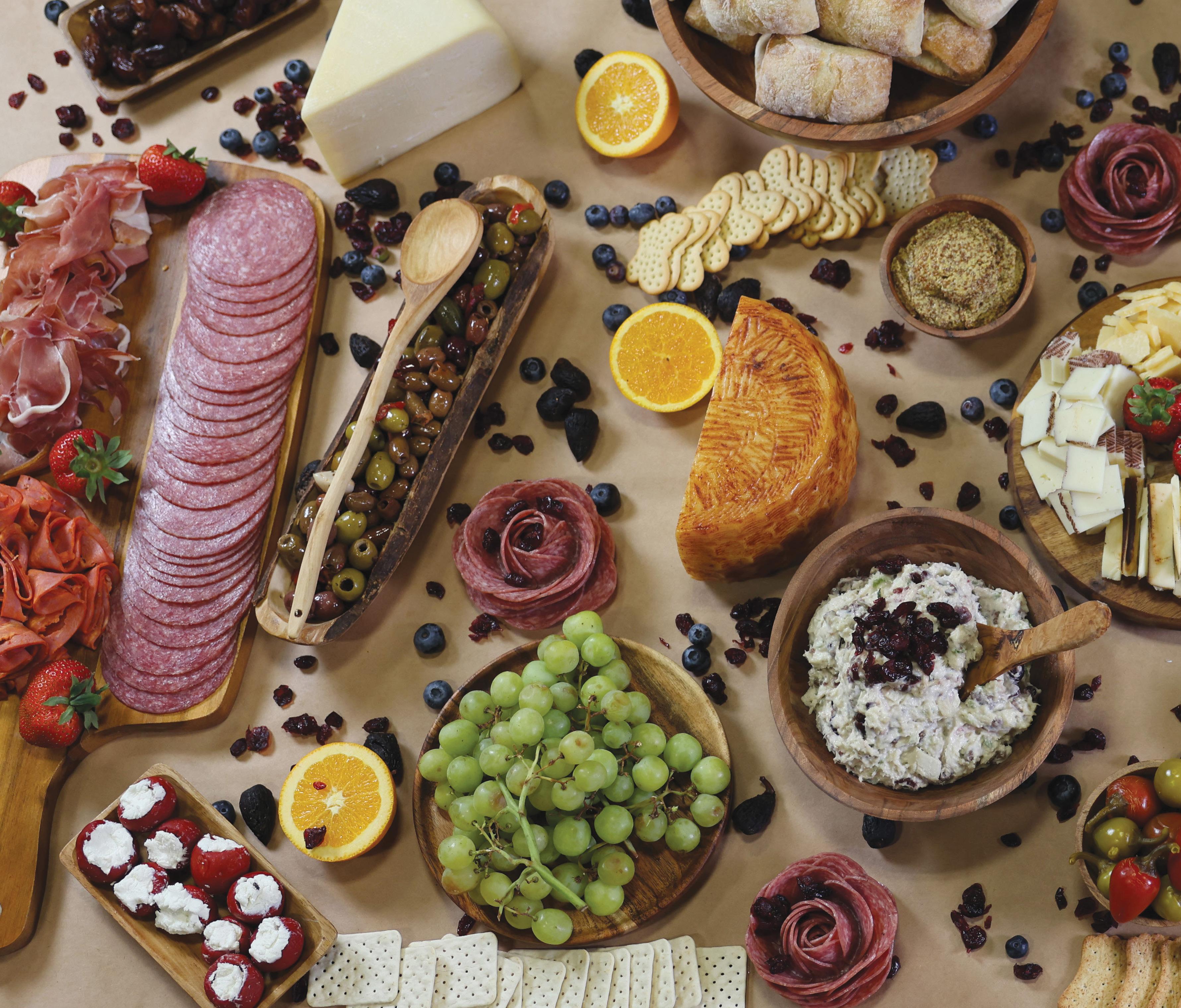 Charcuterie is a great option for large gatherings, catering, or as a small plate meal starter. And, with so many different colors, flavors and textures, it is easy to create an eye pleasing feast! Almost anything goes, so use your imagination. Here are a few ideas.Display your charcuterie on a cutting board or unique plate to add a wow factor. Use high quality meats and fold into different A A B C