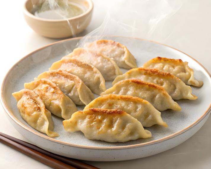 Ready to eat dumplings packed with pork & cabbage flavored with garlic, green onion, & spices. Made with a durable wrapper when fried.