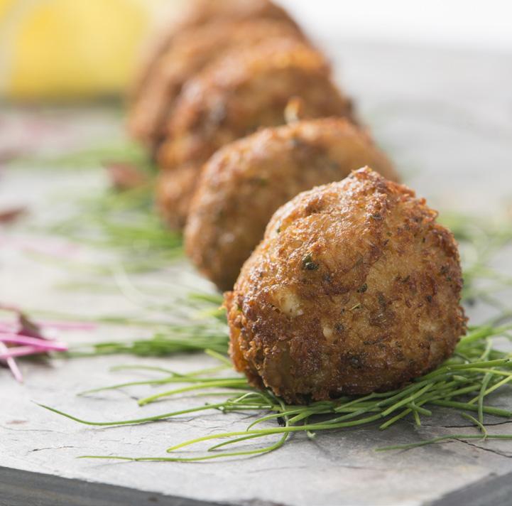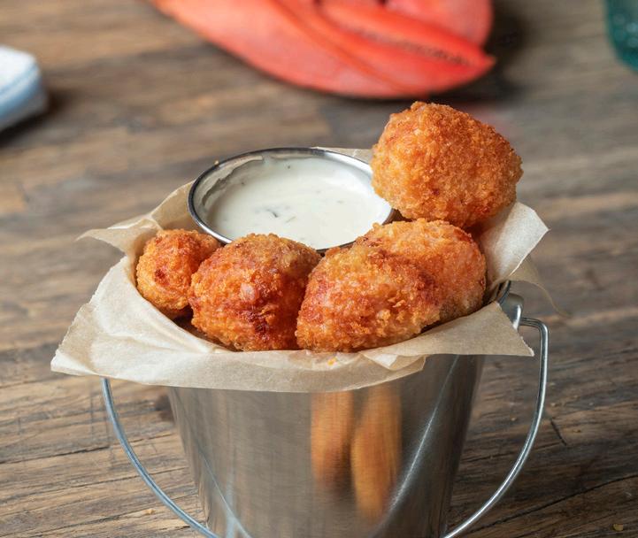 Bite size blend of lobster meat, creamy cheese (Parmesan Romano and Mozzarella) and rice, and wrapped in a savory and crunchy coating.