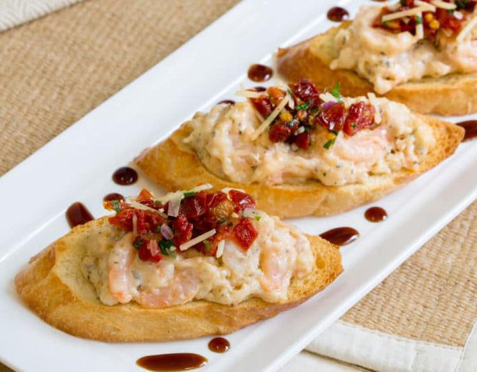 Features real shrimp, blue crab, and fresh Parmesan cheese, with a cream cheese base and other fresh ingredients.