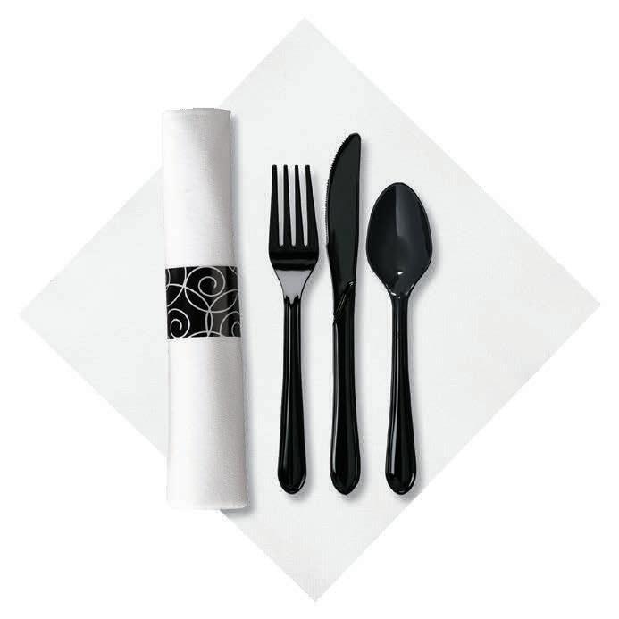 CUTLERY KIT, HEAVY, PP, K,F,T, 9X13 NAP, S&P -BLACK