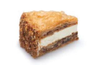 Phyllo layered with chopped nuts, a light cheesecake filling and sweet honey syrup. 1/60oz | 8 SLICES