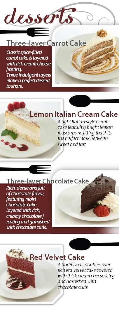 Ū Cakes - carrot, chocolate, red velvet, Italian cream, Belgian chocolate mousse, Brooklyn blackout