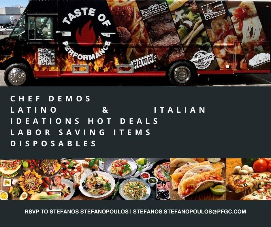Taste of Performance Food Truck Boston brings our culinary team and kitchen directly to you! With the ability to customize your menu and offerings, we can design a unique hands on experience by creating a wide range of services, including product features, marketing materials, cooking demonstrations, and more!