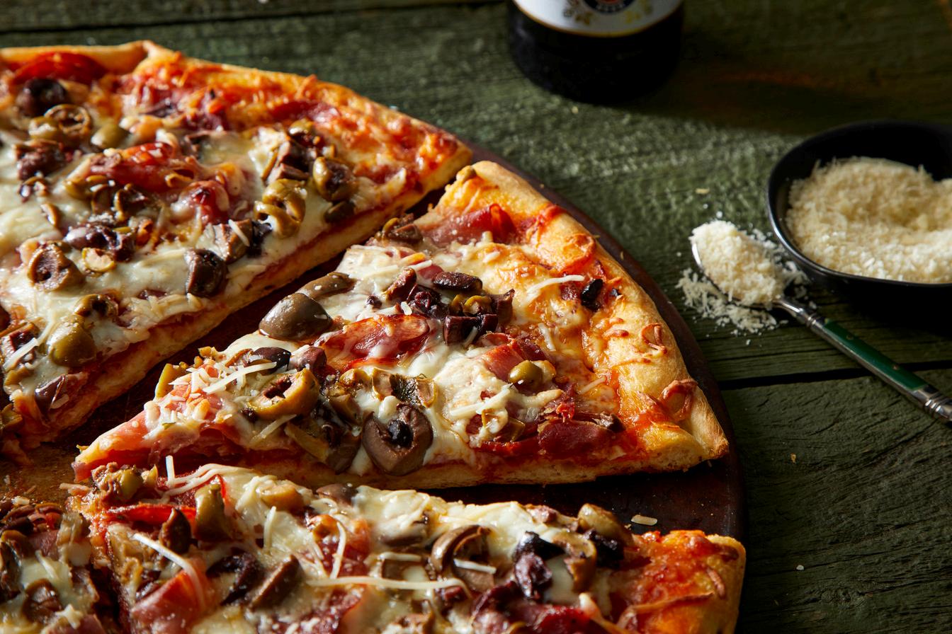 1eaUltimo® 14”HandTossedPizzaCrust 8ozRoma® PizzaSauce,Prepared 2cupsCheddar&MontereyJackCheese, shredded 5eaBacio® Cheese,Mozzarella,slicescut fromblock 8eawholeripeolives,black 1eaRoastedredpeppers,bell 1tbspRoma® Oil,Olive Ghostcookiecuttermold Batcookiecutter