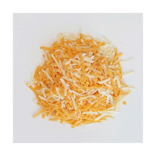 5.Sprinklethecheddarcheeseontopofthesauce.Arrangethecheeseghostsaroundpiesotheystay wholeoneachslicethentopeachghostwithtwodicedolivepiecesfortheireyes.