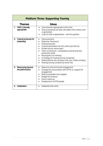 Platform Three: Supporting Touring Themes 1. OMG Culturally appropriate