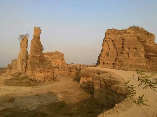 Hal ini didapatkan karena ditemukannya batuan beku di daerah tersebut. Seiring berjalannnya waktu, bentuklahan vulkanik ini mengalami proses pelapukan dan erosi sehingga sekarang berbentuk seperti apa yang kita lihat saat ini dan dapat dibilang menjadi bentuklahan denudasional. Namun, faktor utama dari berubahnya bentuklahan nya bukan karena efek erosi loh, tapi lebih ke kegiatan penambangan yang tidak dibarengi dengan konservasi lingkungan. Penambangan ini dilakukan cara menggali bagian bawahnya sehingga memudahkan bagian atasnya untuk jatuh. Batuan yang jatuh dari atas merupakan reruntuhan yang membentuk sudut lancip yang membuktikan adanya proses erosi, rayapan, dan pergerakan lereng.