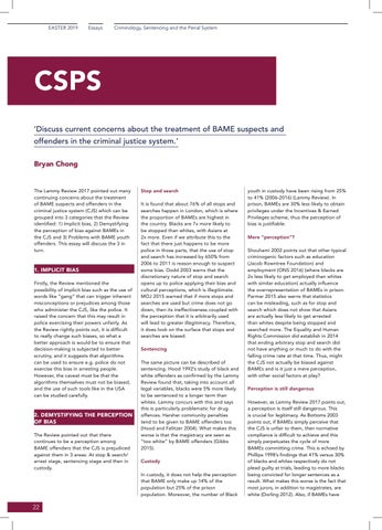 CSPS ‘Discuss current concerns about the treatment of BAME suspects and offenders in the criminal justice system.’ Bryan Chong