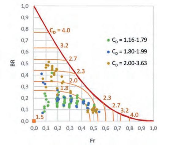 • I risultati delle analisi modellistiche si sono concretizzati nella forma di curve sintetiche dei coefficienti adimensionali delle forze agenti su un impalcato rettangolare con pila circolare, e sono valutabili in funzione del rapporto di inondazione e del numero di Froude della corrente. Tali curve permettono ai progettisti di stimare rapidamente i carichi addizionali attesi sulle strutture in caso di flusso in pressione o di sormonto