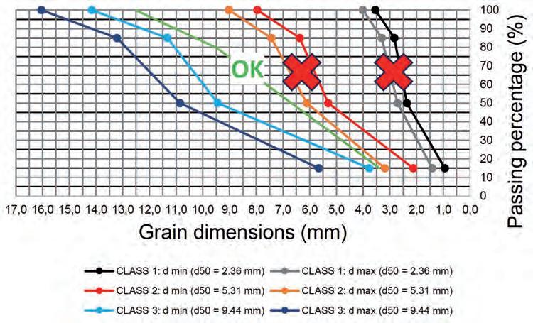 Figura 5.10 Classi granulometriche utilizzate da Eulogi (2017) per la verifica sperimentale dei tappeti antierosione.