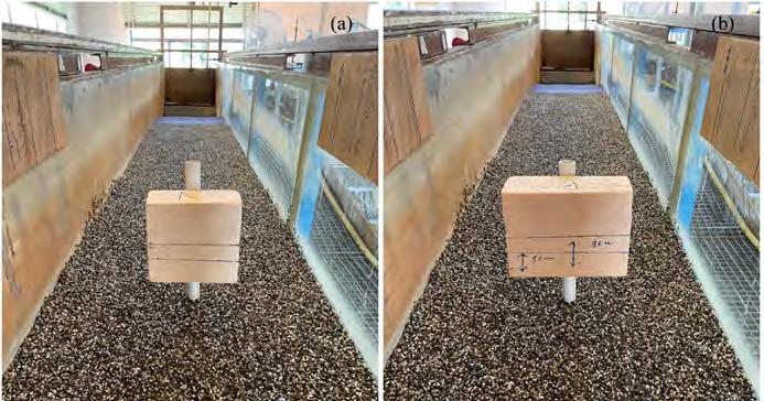 In laboratorio è impossibile riprodurre esattamente il fenomeno come si realizza nei casi reali. Su modello il rapporto tra il diametro della scogliera e il materiale d’alveo è inferiore di più di un ordine di grandezza, valutando tale rapporto compreso tra 500 e 1000 su prototipo: quindi su modello i massi non affondano. Come già ricordato, tale condizione è ottenibile nei casi reali solo posizionando alla base del tappeto un idoneo geotessuto (Da Deppo et al., 2022).