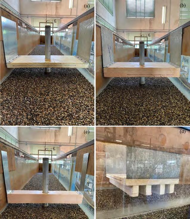 Inoltre, test sperimentali sono stati anche condotti al fine di analizzare la fenomenologia erosiva in presenza di impalcati di varie dimensioni parzialmente o totalmente sommersi. Tali test hanno consentito di valutare sia il meccanismo erosivo che le azioni idrodinamiche trasmesse dalla corrente alla struttura.